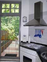 Herd mit Backofen und Ablufthaube sowie Ausgang zur Terrasse ...