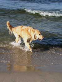 Mutig zeigt er den Hundedamen - das Wasser ist nicht so kalt...